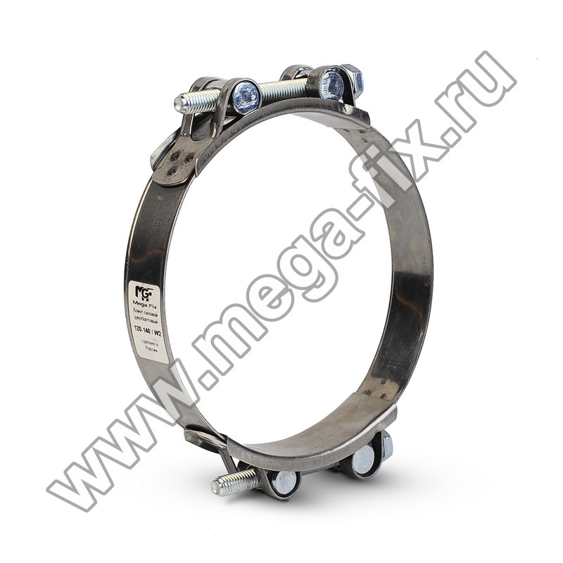 Для рукава такого диаметра подойдет хомут силовой двухболтовый 140-160, силовой хомут MGF 149-161.